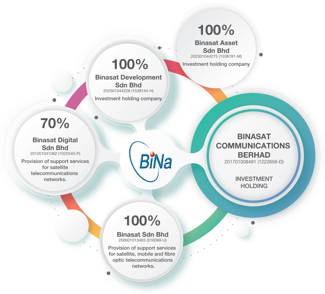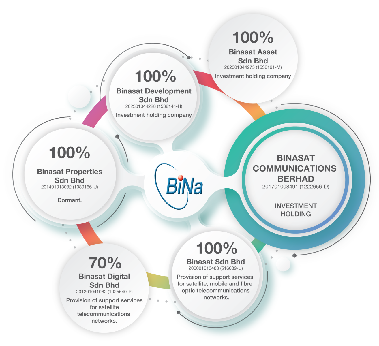 Binasat Development Sdn Bhd (Formerly known as Enig Sdn Bhd) | 08 November 2023, Malaysia | 100.0 | Investment holding company |